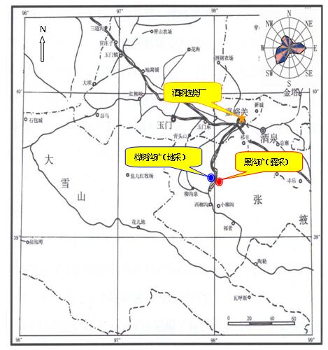 項(xiàng)目概況:鏡鐵山鐵礦是酒鋼最主要的鐵礦石原料基地,其地處甘肅省肅南裕固族自治縣祁豐鄉(xiāng)鏡內(nèi),位于東經(jīng)98°03′,北緯39°22′,東北直距酒泉鋼鐵公司所在地嘉峪關(guān)約55km,有鐵、公路相通,鐵路全程78km,公路計程138km,交通運(yùn)輸方便。地理位置如下圖所示。