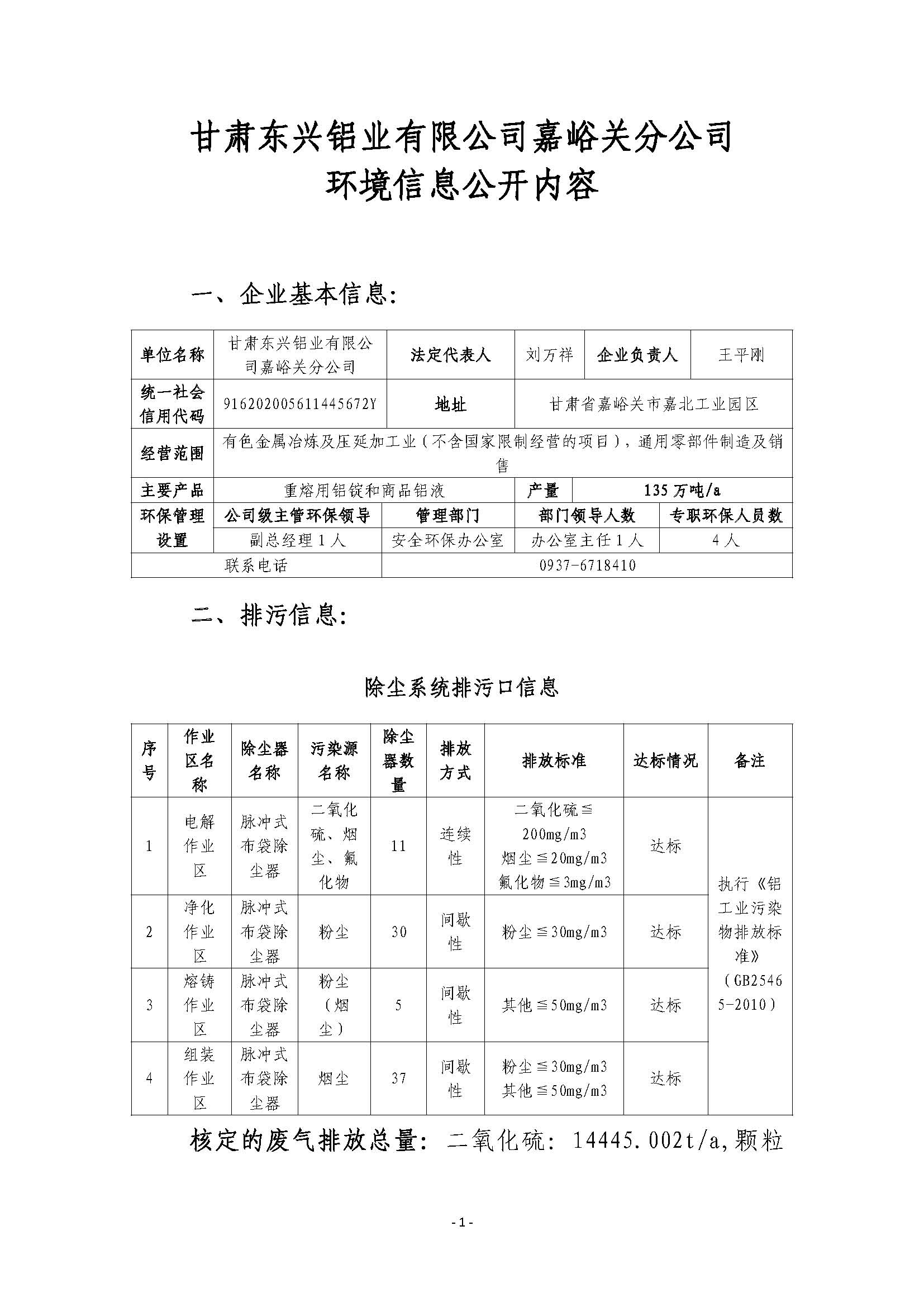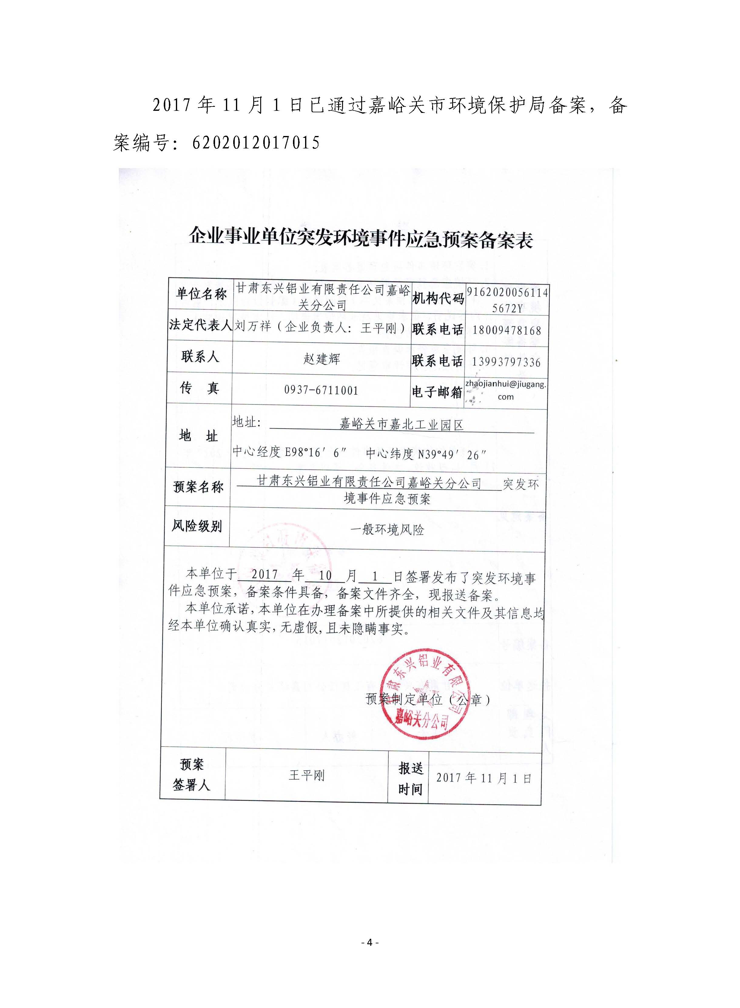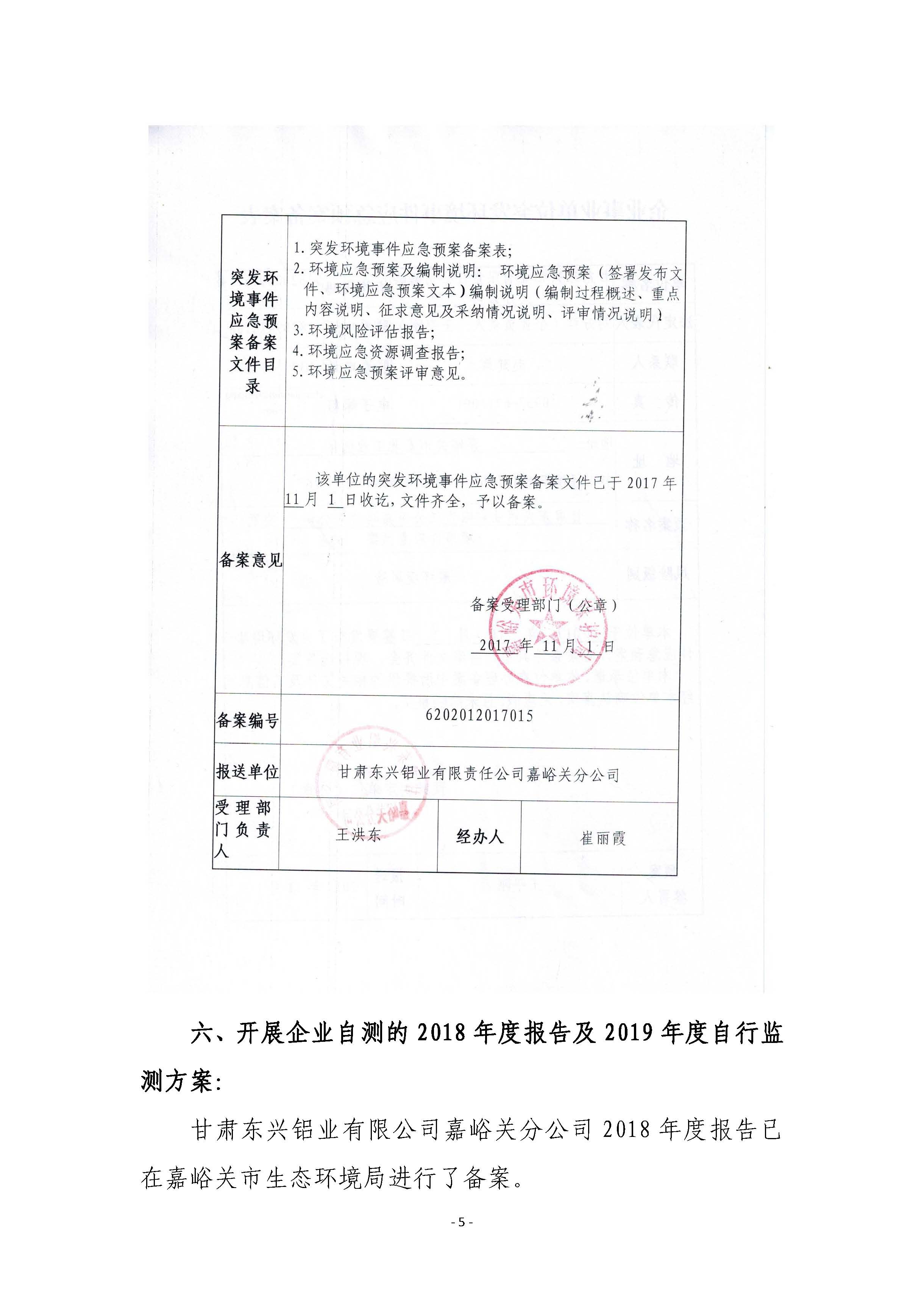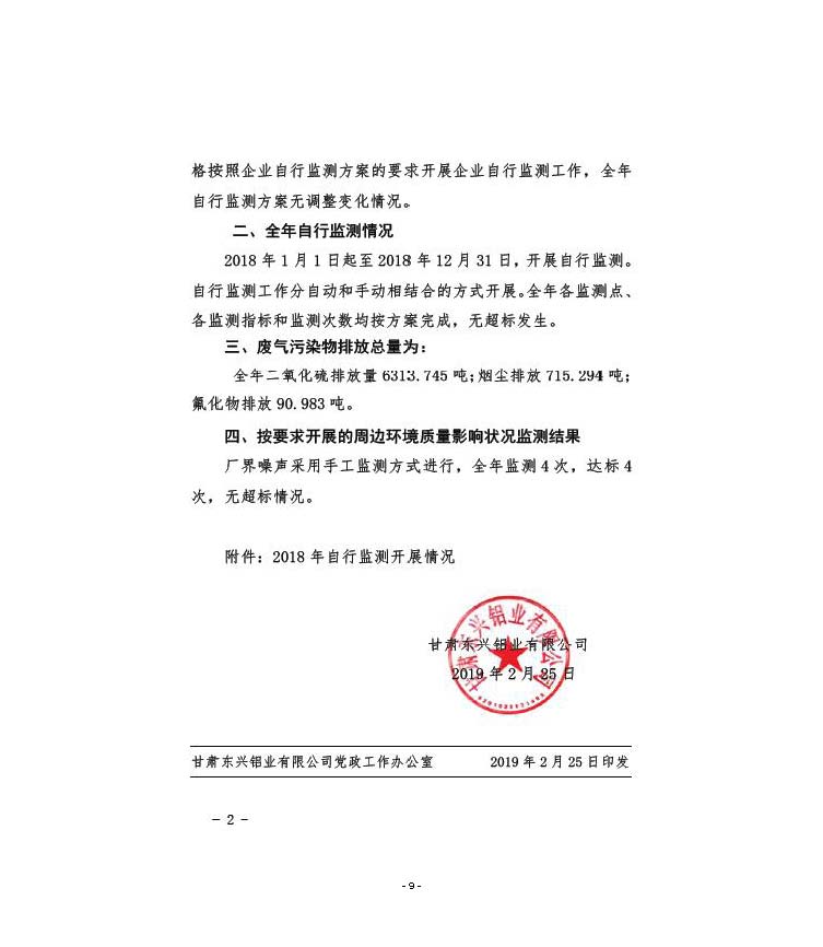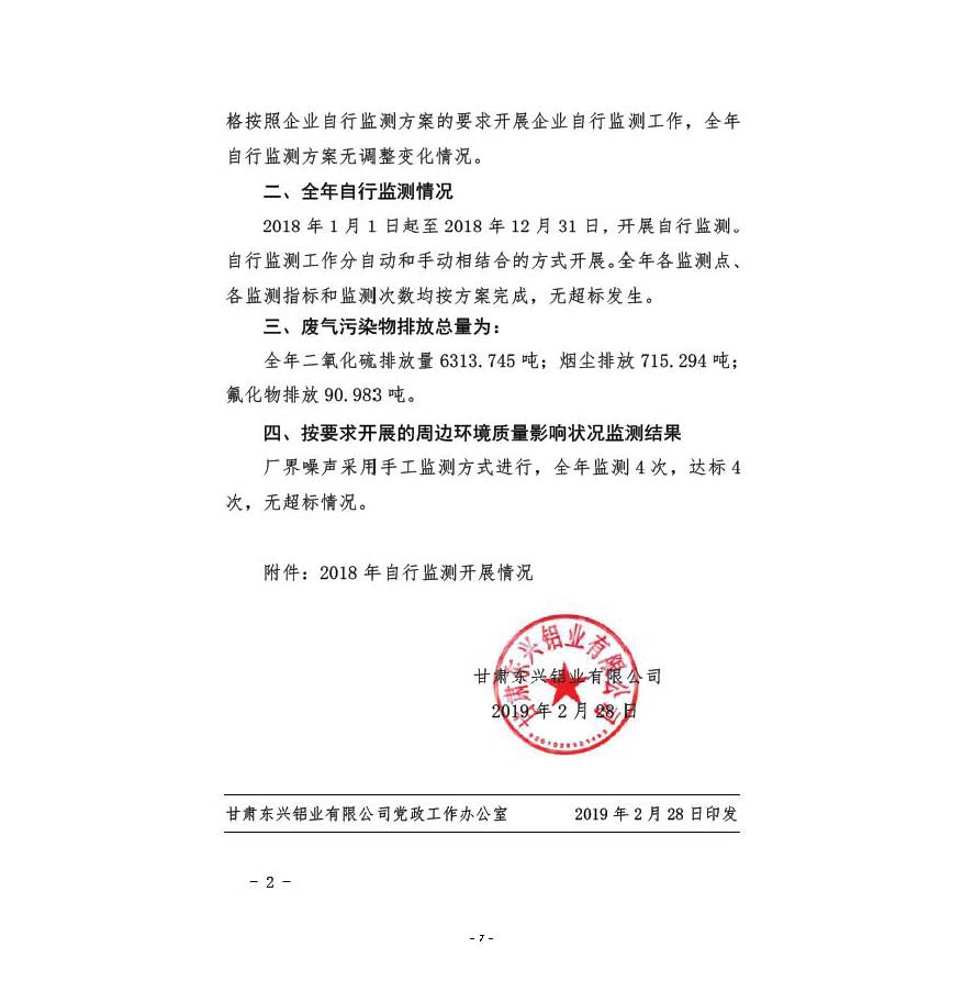 甘肅東興鋁業(yè)有限公司嘉峪關(guān)分公司2019年度環(huán)境信息公開(kāi)
