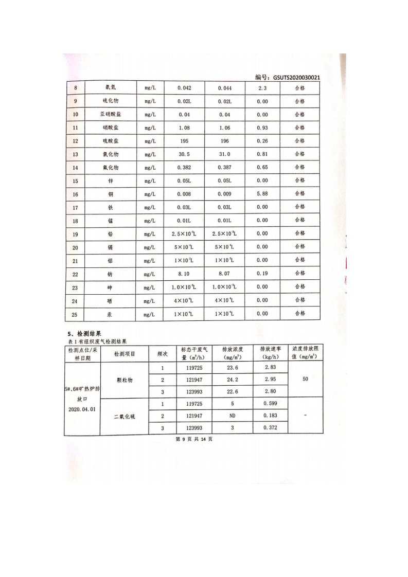 | 8#礦熱爐 | 顆粒物 | 2 | 2 | 2 | ||