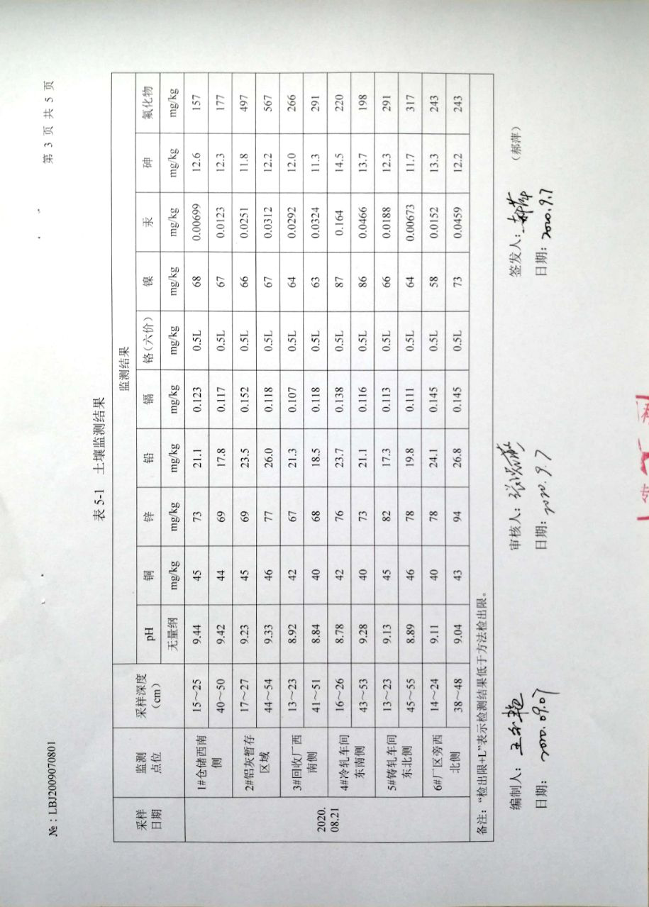 | 監(jiān)測(cè)數(shù)據(jù) | 詳見(jiàn)甘肅酒鋼天成彩鋁有限責(zé)任公司2020年土壤環(huán)境檢測(cè)報(bào)告,批號(hào):LBJ2009070801 | |||