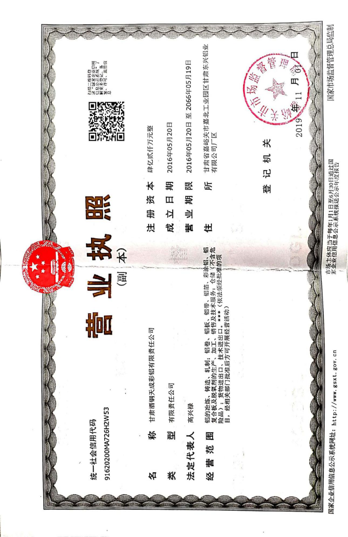 甘肅酒鋼天成彩鋁有限責(zé)任公司