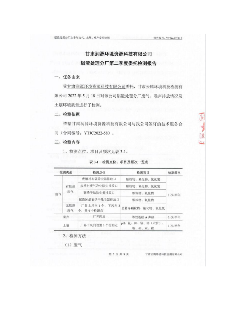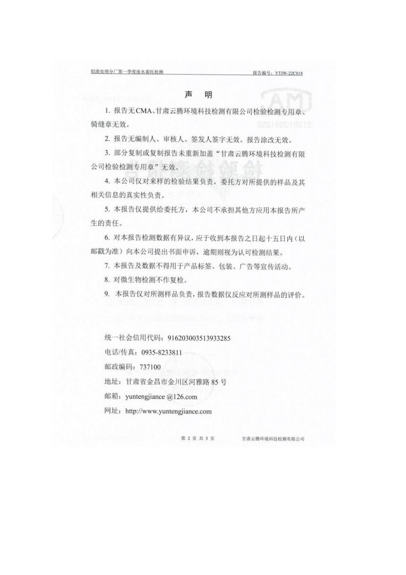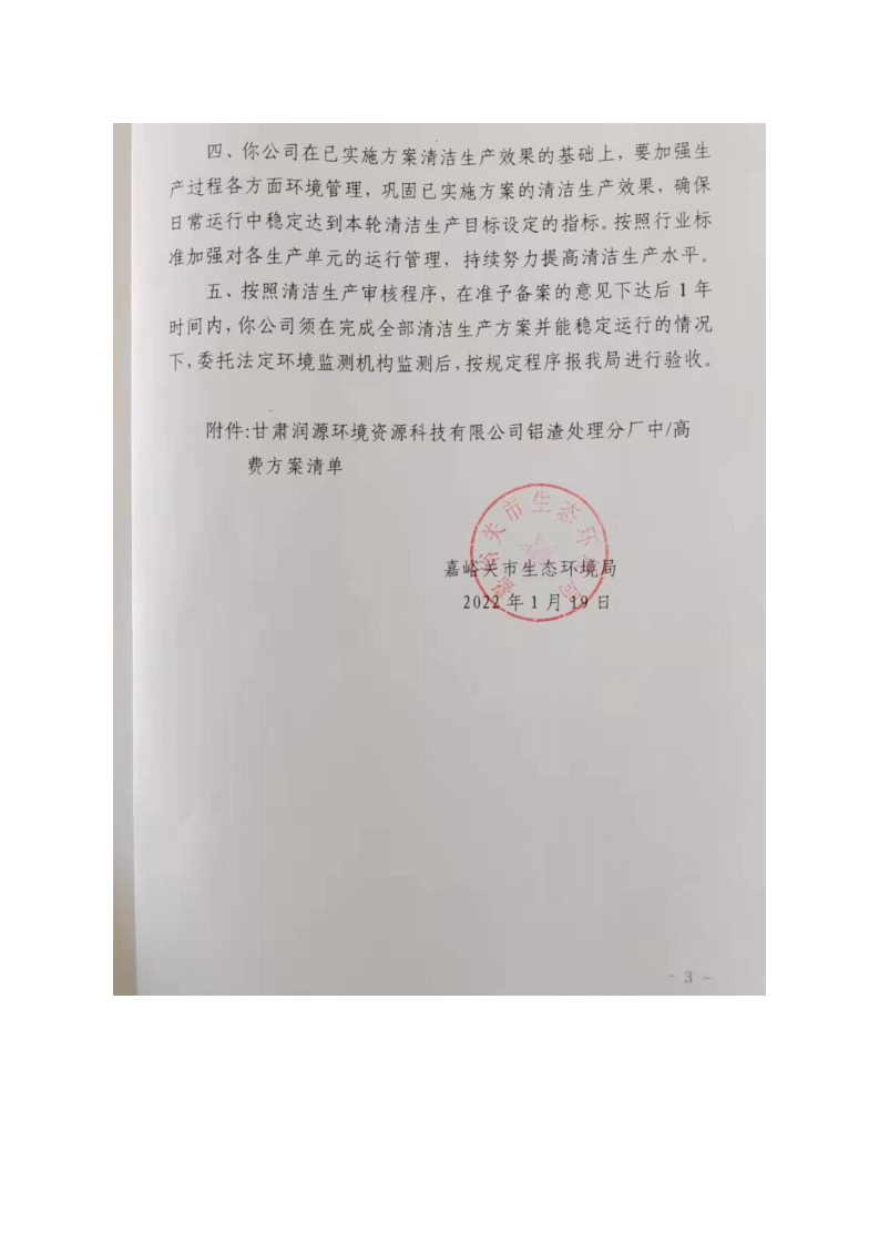 甘肅潤源環(huán)境資源科技有限公司鋁渣處理分廠2022年環(huán)境信息公開