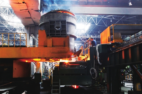 去年以來(lái),宏興股份公司煉軋廠連鑄作業(yè)區(qū)大力開(kāi)展科技攻關(guān)、崗位創(chuàng)新,在生產(chǎn)作業(yè)中實(shí)行“窄溫度、窄拉速”精細(xì)化控制,實(shí)現(xiàn)全年“零故障、零事故”目標(biāo)。圖為該作業(yè)區(qū)1號(hào)連鑄機(jī)生產(chǎn)現(xiàn)場(chǎng)?!⌒な缽?qiáng)攝