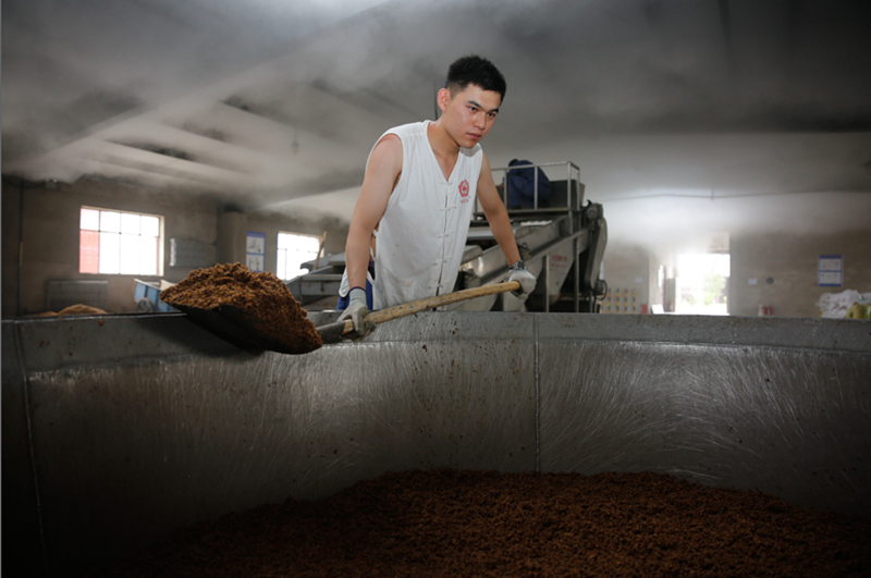 金秋時節(jié),宏源公司紫軒酒業(yè)雄關(guān)酒業(yè)公司釀出6噸新酒。技術(shù)人員創(chuàng)新白酒釀造工藝,通過研究清香型和濃香型白酒窖池構(gòu)造,設(shè)計出清濃兼香型白酒發(fā)酵的特殊窖池。同時,總結(jié)提煉出“1322”釀造工藝,經(jīng)過100天潤糧、上甑、發(fā)酵、蒸餾、入窖、出窖等環(huán)節(jié)的細節(jié)管控,最終生產(chǎn)出清濃兼香型白酒。閆濤 張振東 攝影報道
