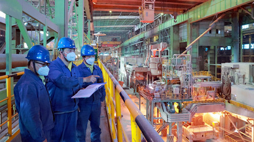 黨的十九屆六中全會勝利召開,酒鋼廣大干部職工備受鼓舞,進一步增強了奮進的信心與斗志,滿腔熱情投入生產(chǎn)經(jīng)營活動中,立志在新時代、新征程上展現(xiàn)新氣象、新作為。圖為宏興股份不銹鋼分公司職工在生產(chǎn)現(xiàn)場把控產(chǎn)品質(zhì)量。張志方 攝