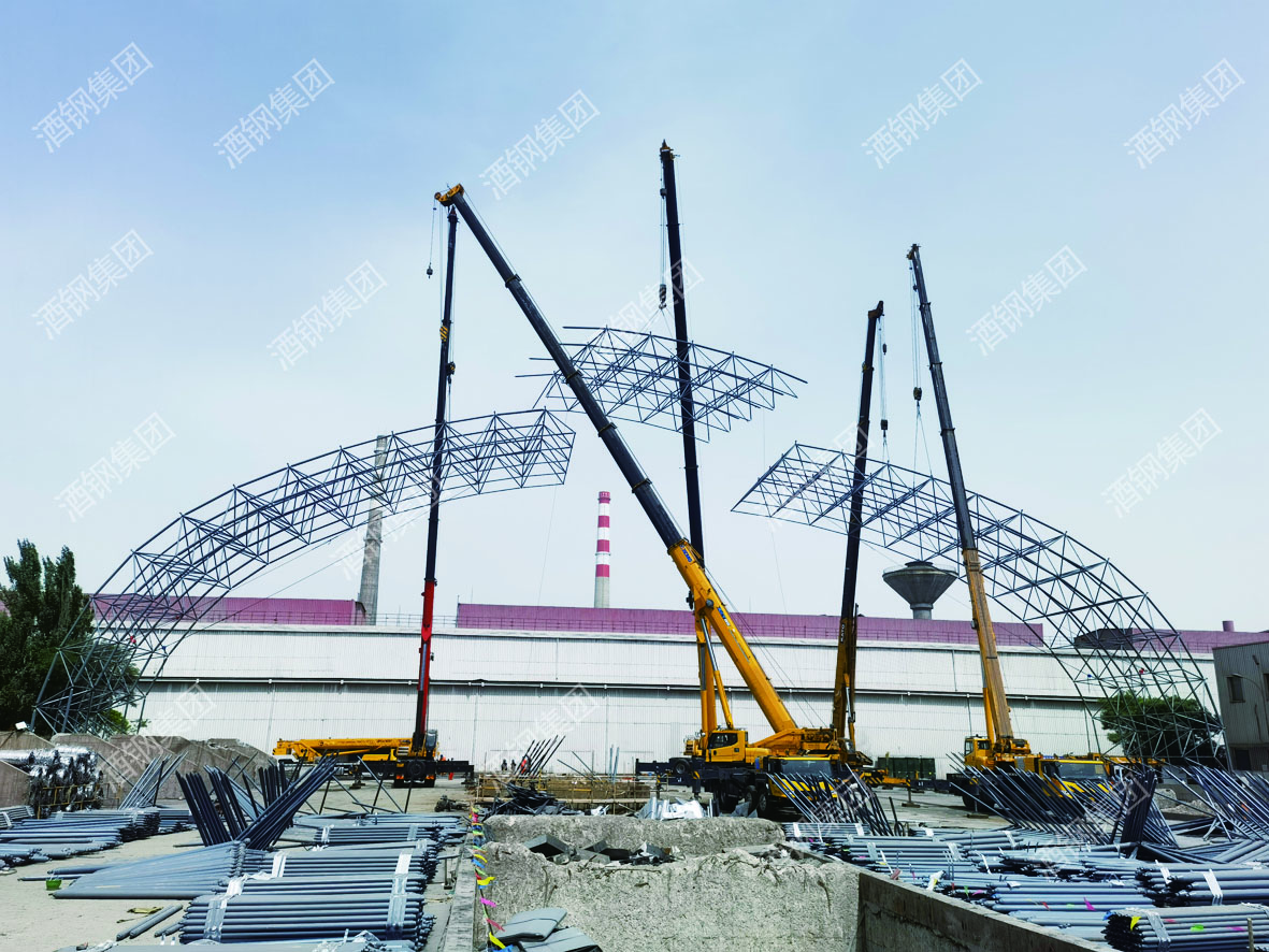 不銹鋼料場改造工程第一榀網(wǎng)架吊裝